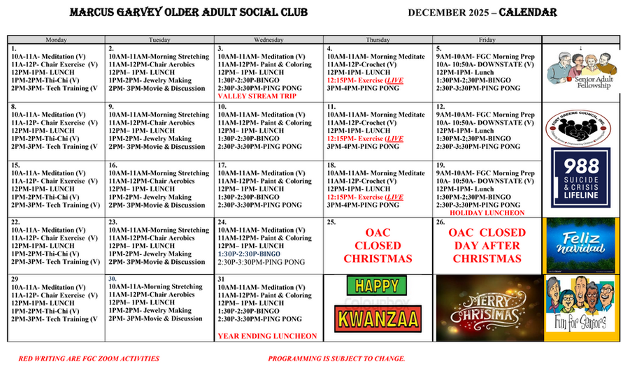Located in the heart of Brooklyn at 1440 East New York Avenue, the Marcus Garvey Older Adult Club has been proudly serving the Brownsville community since 2014. As part of Fort Greene Council’s network of Older Adult Clubs, Marcus Garvey OAC offers a vibrant, supportive environment where older adults can thrive, connect, and lead healthy, active lives.